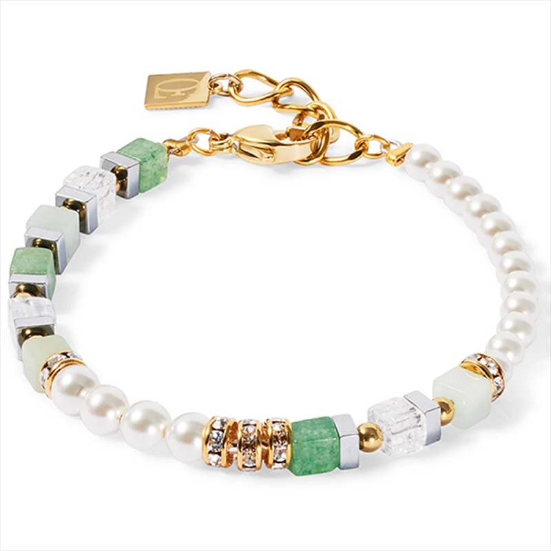 Természetesen szép, játékosan elegáns – a Precious Fusion Offset karkötő arany-zöld kombinálja az amazonit, a zöld aventurin és a hegyikristály élénk zöld tónusait a Swarovski® lágyan csillogó fehér kristálygyöngyeivel. Az aranyszínű rozsdamentes acélból készült aranyszínű részletek kifinomult jelleget kölcsönöznek a karkötőnek, míg a kifinomult offset kialakítás modern, könnyed megjelenést eredményez. Tökéletes társ a stílusos megjelenéshez egy kis természetességgel. Méretek: Hossz: 18 cm + 3 cm hosszabbító lánc. Átmérő: 0,4 cm.