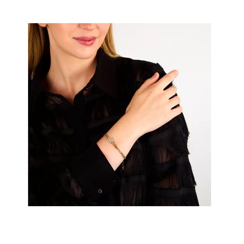 Karl Lagerfeld karkötő. Kristály díszítéssel. Rozsdamentes acélból készült. Fedezd fel a divatlegenda örökségét ebben az egyedi tervezésű ékszerben, ahol a modern elegancia találkozik a merész karakterrel. Tökéletes választás azoknak, akik nem csak viselni, hanem megélni szeretnék a stílust.