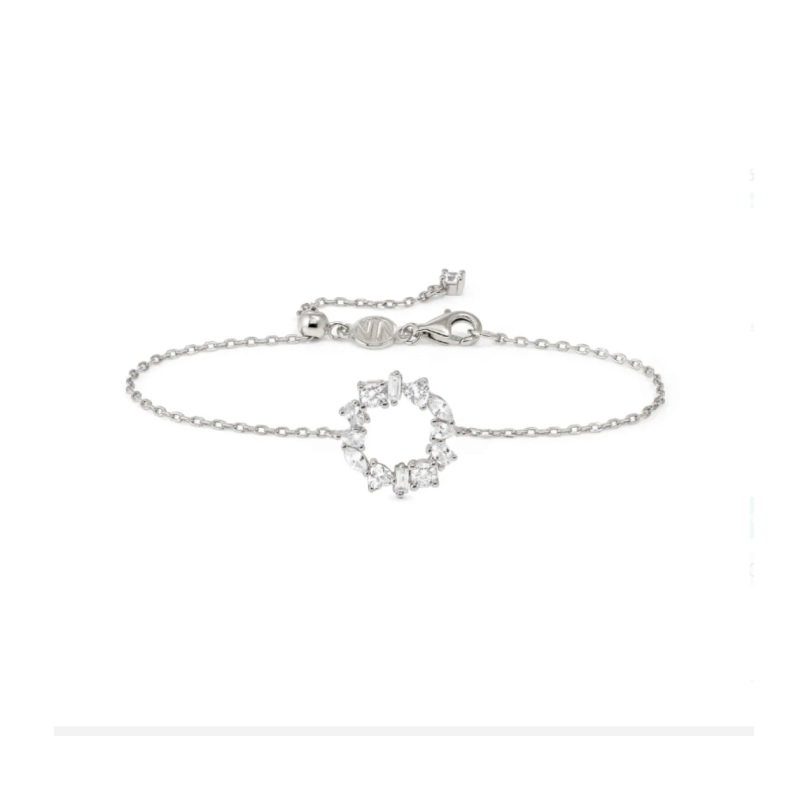 Ez a modern ezüst karkötő elegáns megjelenést és kifinomult részleteket kínál minden alkalomra. A ragyogó fehér cirkónia kövek finoman kiemelik a karkötő letisztult formavilágát, miközben időtálló csillogást biztosítanak.A darab kiváló minőségű anyagokból készült, és galvanizált felületkezeléssel érhető el, amely tartósságot és különleges megjelenést garantál