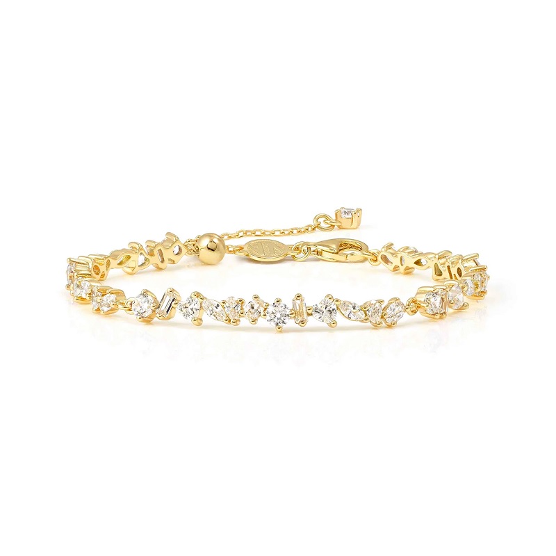 Emeld magasabbra a mindennapi stílusodat ezzel a 18 karátos arannyal bevont sterling ezüst karkötővel, mely csillogó fehér cirkónia kövekkel van díszítve, melyek gyönyörűen visszaverik a fényt. A finom dizájn visszafogott eleganciát kölcsönöz mind a hétköznapi, mind az elegáns megjelenésnek. Minőségi anyagokból készült, ez a sokoldalú darab időtlen kiegészítője lehet ékszergyűjteményednek.