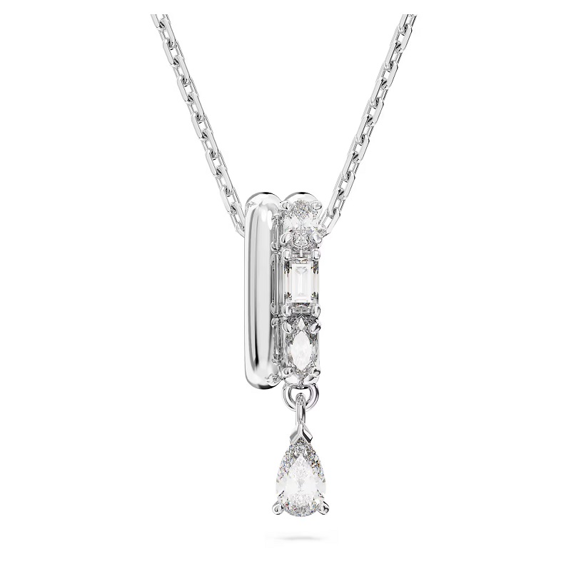 Élvezze ennek a ródiummal bevont Imber medálnak a kifinomult kifinomultságát. A kifinomult dizájn egy dupla gyűrűt foglal magában, amelynek egyik oldalát átlátszó kristályok díszítik, és egy alatta függő, egyetlen karmába foglalt kő. A luxus fokozása érdekében a darabot egy finom láncon viselik, amelynek végét Swarovski cirkónia díszíti. Egy merészen sikkes darab, amely zökkenőmentesen repít a nappalból az éjszakába.