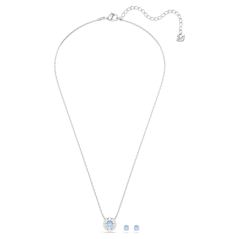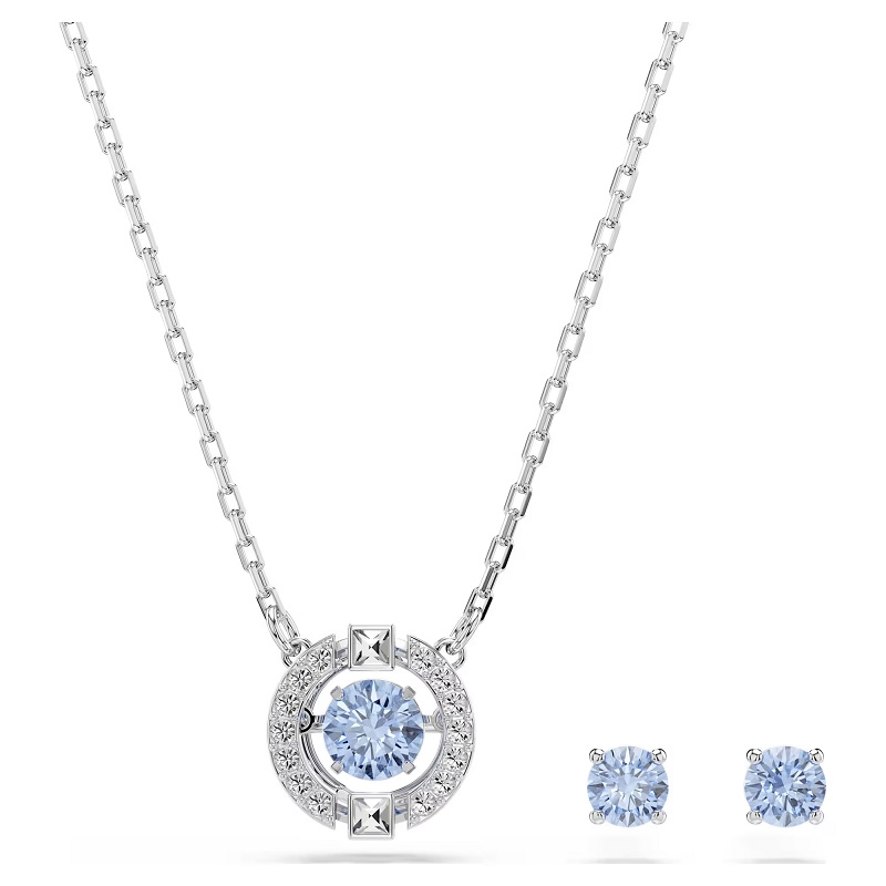 Adjon gondolataival átfont ajándékot idén Anyák Napjára ezzel az időtlen szettel, amely egy pár bedugós fülbevalót és egy nyakláncot tartalmaz. Kifinomultan és elegánsan jeleníti meg a Una innovatív „táncoló kristály” formatervezési koncepcióját, kör alakú motívummal a pavéban, amely egy lebegő, sziporkázó pasztellkék követ ölel körül. Ródium bevonatával a luxust egy leheletnyi játékossággal ötvözi.