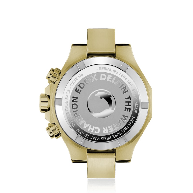 Az EDOX első búvárórája 1961-ben látott napvilágot, egy olyan karóra képében, amely vízállóság és ütésvédelem tekintetében új mércét állított fel: a dupla hátlap, az acélkeretes, csavarozott szerkezetrögzítő, a speciális dupla O-gyűrűs rendszer, a különleges védőtömítések méltán érdemelték ki a THE WATER CHAMPION elnevezést. Ez az óra volt a később világhírre szert tett DELFIN.