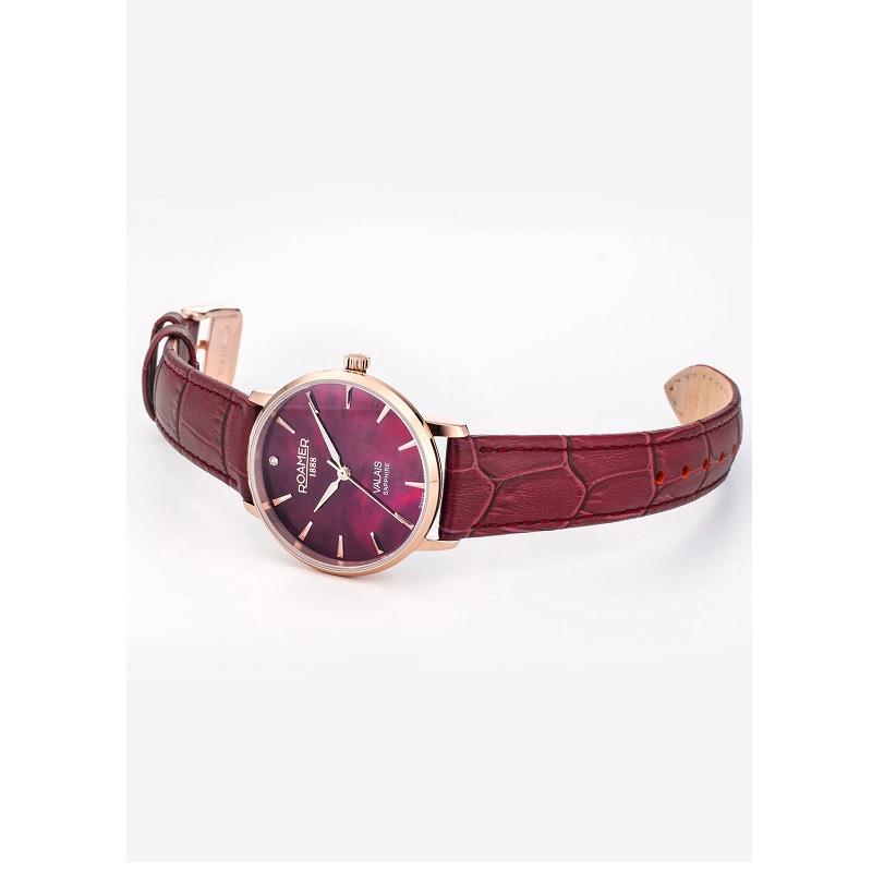 Az új VALAIS LADIES ügyesen ötvözi a ruhaóra időtlen eleganciáját a finom, nőies kifinomultsággal. Értékes, szemet gyönyörködtető elem a csillogó valódi gyémánt, amely a 12 óra pozícióját jelzi. A gyönyörű, 32 mm-es tokprofiljával a kerek számlap csillogó, fehér, zöld, piros vagy finom rozé gyöngyház számlappal varázsol el.