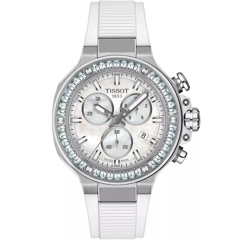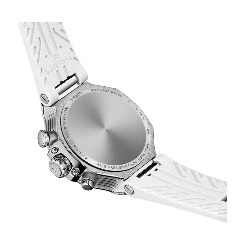 A Tissot T-Race Quartz Chronograph T141.817.97.111.00 egy női sportóra, amely 316L rozsdamentes acélt kombinál kerámia elemekkel a lünettán. A fehér gyöngyházszínű számlapon a hónap napjai, a dátum és a kronográf funkciók – egy központi 60 másodperces mutató, egy 30 perces számláló és egy 1/10 másodperces számláló – találhatók. Az indexeket és a mutatókat Super-LumiNova bevonattal látták el a jobb olvashatóság érdekében a sötétben. A modell svájci gyártmányú kvarc óraművel működik, amely EOL-rendszerrel rendelkezik, amely jelzi, ha az elemet ki kell cserélni. A dizájnt tükröződésmentesített zafírüveg védi, a 100 méteres vízállóság pedig lehetővé teszi, hogy az órát úszás közben is lehessen használni.
