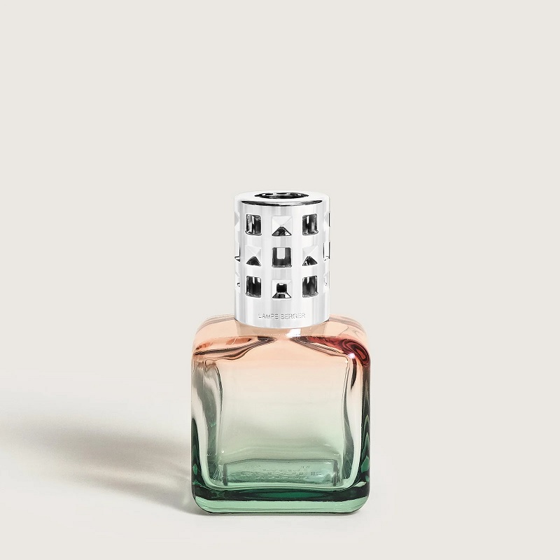 A Berger Glaçon Pêche/Verte lámpabúra a Maison Berger Paris intézményi kollekciójának része, és merész dizájnjával tűnik ki. Ez az ikonikus lámpa egy Haute Couture ihlette sakktábla hatású foglalattal van újraértelmezve, amely kiemeli időtlen kocka alakú sziluettjét.