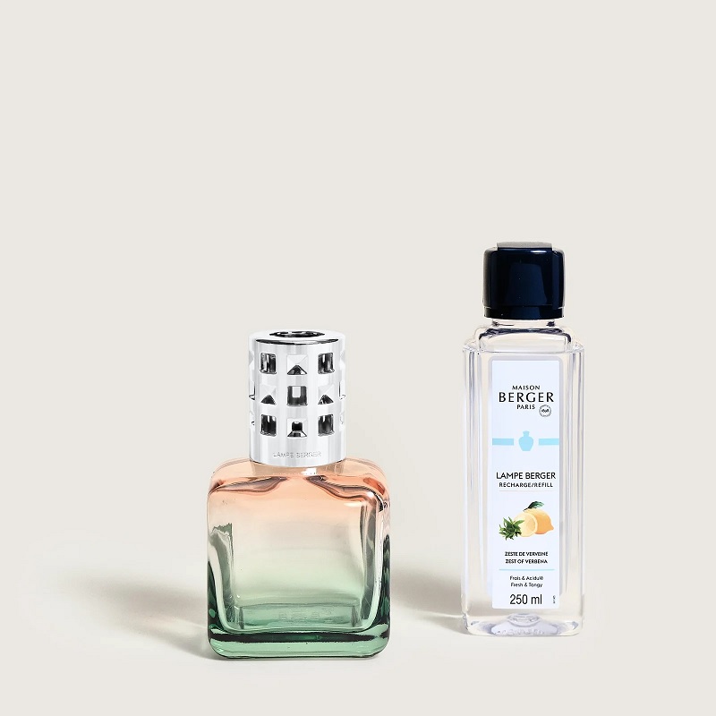 A Berger Glaçon lámpa Pêche/Verte batikolt felülettel rendelkezik, amely a fényárnyalatokkal játszik, hogy fokozza dekoratív megjelenését. Ez a 250 ml-es utántöltőt is tartalmazó szett tökéletes azok számára, akik a modern dizájnt friss hangulattal szeretnék ötvözni otthonukban.